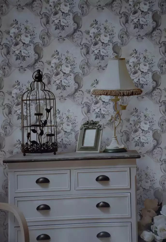 کاغذ دیواری, بر اساس رنگ, بر اساس طرح, بر اساس محیط, داماسک, سالن پذیرایی, طوسی و نقره ای و خاکستری, کلاسیک