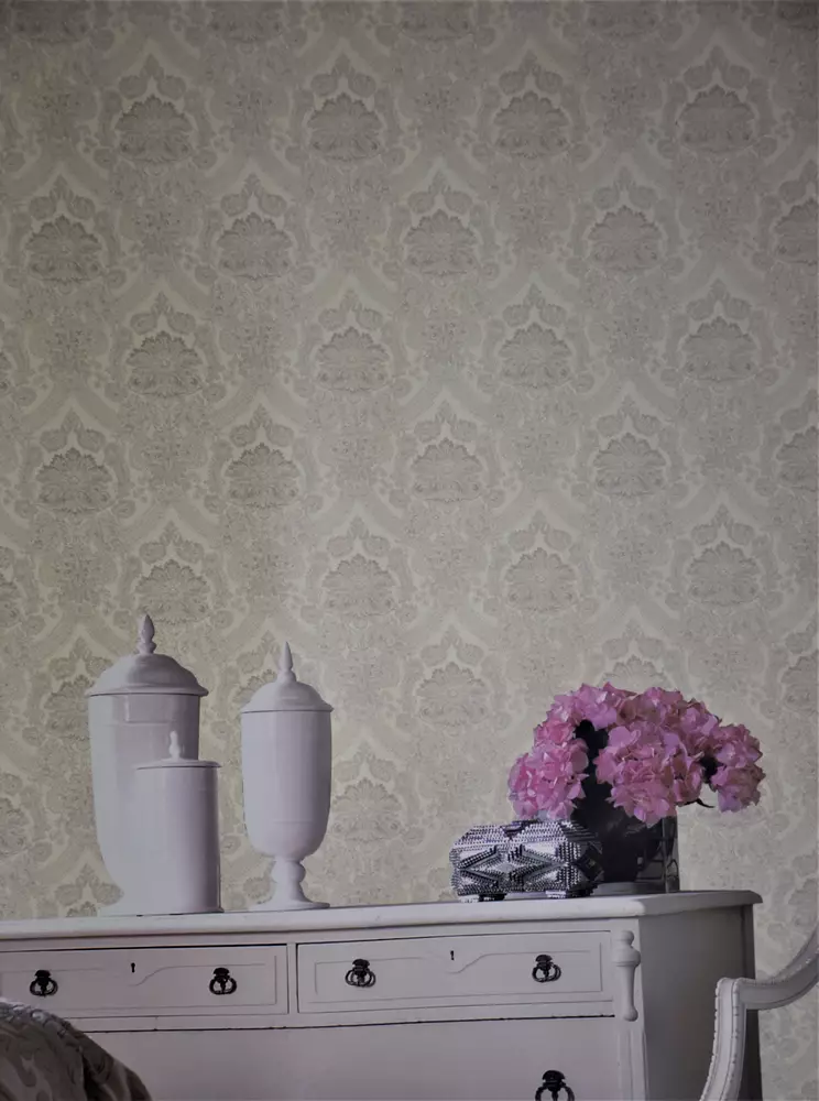 کاغذ دیواری, بر اساس رنگ, بر اساس طرح, بر اساس محیط, داماسک, راه راه, سالن پذیرایی, طوسی و نقره ای و خاکستری, کرم قهوه ای و استخوانی